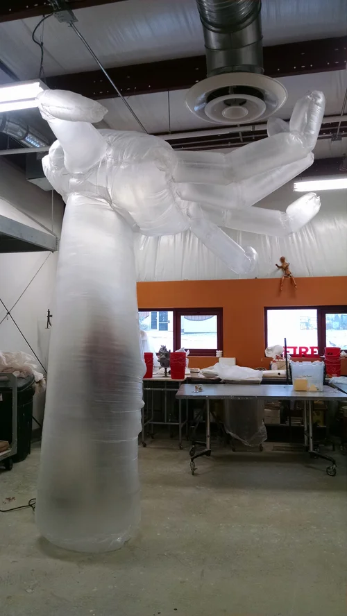 Sheet metal, pop rivets, key rings, cargo netting, sea shells, Elmer’s glue