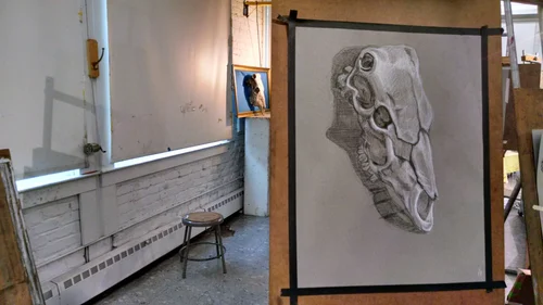 White & Black Conte Sketch Pencils on Steel Gray Paper